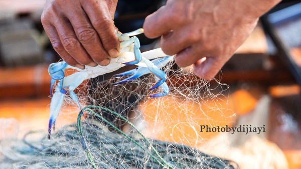 没一会,居然真的有小鱼入网了,再等等,海蟹也捕到好几只,而且个头还挺大的,还有些贝类,虾类,也算是满载而归呀。