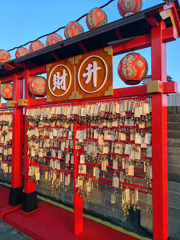 从这出来基本就结束了兵马俑的行程了。我们垫了一口吃的,打车去的地铁站,然后倒地铁到永宁门。这已经下午3点了。永宁门出来我们选了一个陕菜餐厅,在胡同里,往餐厅走的一路欣赏了当地居民的烟火气,还穿过一条酒吧街,特别适合拍照。醉长安这家饭店的装修古香古色,非常的有古都风格。4点开始营业,我们到的时候就开始排队了。我们点了非常具有陕西特色的菜,还有当地啤酒,酸梅汤,菜非常的好吃,这家饭店推荐。返回到永宁门上城墙,也是夜景更漂亮,但是建议5、6点钟就上去,白天也有白天的美,这个时间就可以把白天和夜景都看了,非常不错。自行车不是在永宁门城楼的位置,也就是说上了城墙后是要往前走一段路才有租车点的。我们期待的项目最终没有达成,因为不允许12周岁以下孩子上车,这个规定属实有点死板了,我们只好放弃。城墙上我们走了一个半小时左右就下来了,打车去洒金桥美食街。就像我们这边的夜市一样,但是全是吃的。沿着胡同一直走到头就可以了。