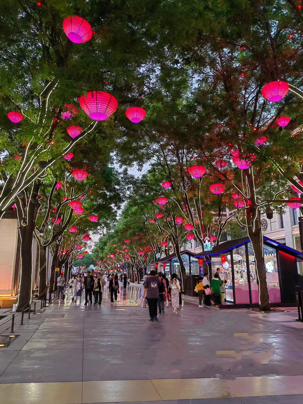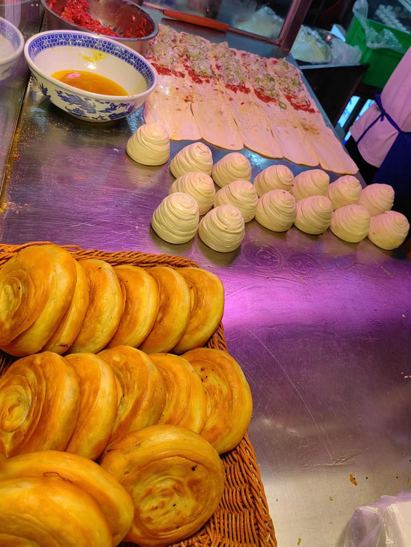 北广场的音乐喷泉7点开始,但是说实话,因为看过更好的,所以这个不太吸引我,相比而言沈阳浑南的那个音乐喷泉更壮观,这个有点小了。音乐喷泉往前就是慈恩寺,已经关门了,但是很多人在墙外拍照,因为那个红墙配上汉服确实漂亮。要说一句,到了西安,穿汉服的人遍地都是,千万不要觉得穿越了。哈哈!大雁塔景区沿途的两侧都是卖东西的,纪念品,汉服,小吃,啥都有。过了大雁塔南广场就是大唐不夜城的那条步行街。从7点多开始陆续一路都有表演,步行街是花了心思设计的,展示了西安古都的特色,比如盛唐,比如玄奘,比如唐朝的诗人相关的雕塑等等,晚上夜景漂亮,白天一般。从大雁塔到大唐不夜城,连走带逛一个来回下来就已经是晚上9点半了。我们还是步行回酒店,中间路上吃了口东西,因为中午那个面吃的太饱,晚上都不饿,就吃了一点凉皮。西安街上随便一个小饭馆都能看见几十年上百年的历史,挺有意思。