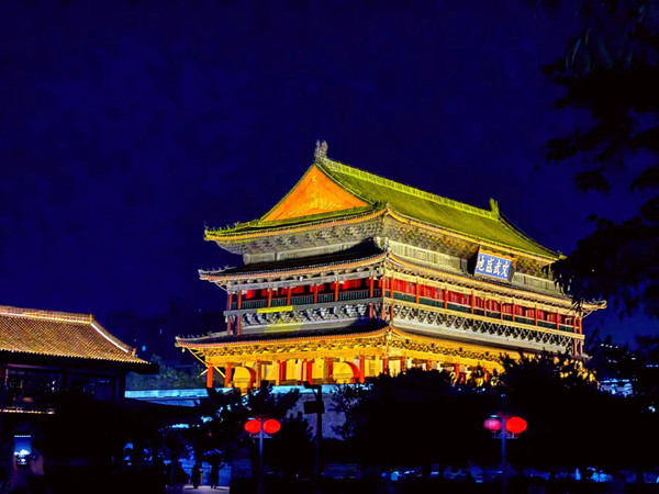 美食街到头之后左转直接奔鼓楼和钟楼。我们全程步行,这一天走了3万多步,是我历史之最了。钟鼓楼的夜景很漂亮,拍照效果也很好。