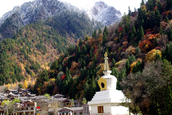 当然,如果是到四川省阿坝羌族藏族自治州的黑水县的话,理由还有一条,那就是这个季节正是观赏红叶彩林的最佳季节。从黑水县城到雅克夏雪山这条长达40公里的山路,据说是中国最为壮观的彩林景区,而且不需要任何的门票。