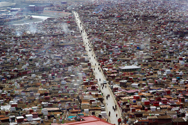 这样的小屋,单个看起来实在是不起眼,几间几十间也如此,但当它几千上万覆盖了整片山坡,那个场面就极为震撼。除了那些小屋,还有菜市,各类宗教用品店,僧侣服装店,自助银行,甚至电信营业部,公厕非常整洁还配有厕纸,这里已经俨然成为一个上万人居住的宗教小镇。