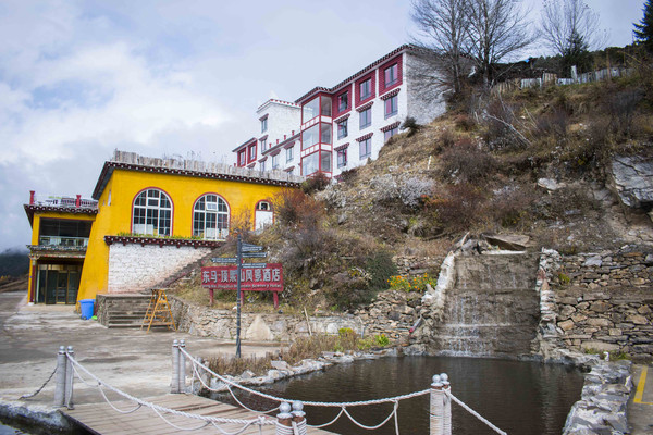 当时温泉项目的一位保安的家乡就是丹巴顶果山,有一次他来到这位员工的家乡,就被这里的景色深深地吸引了,并下决心在这里开发旅游业。酒店是2007年开始动工,历经十年才与2017年建成并试营业。