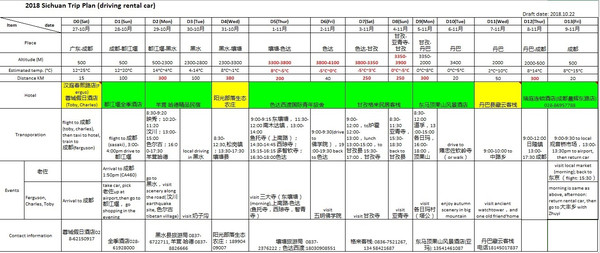 我有时候是一个完美主义者,对于自己感兴趣的事情总爱钻研,不错过任何细节,不到没有把握就不会付诸行动。比如这次川西北旅行,我花了无数功夫,做了大量功课,最终炮制出让队友咋舌的无比详细的旅行计划。
