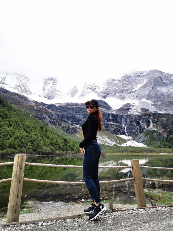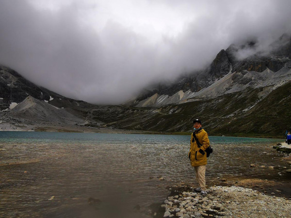 这里的水很清澈,只是乌云来得太快,把雪山挡住了。