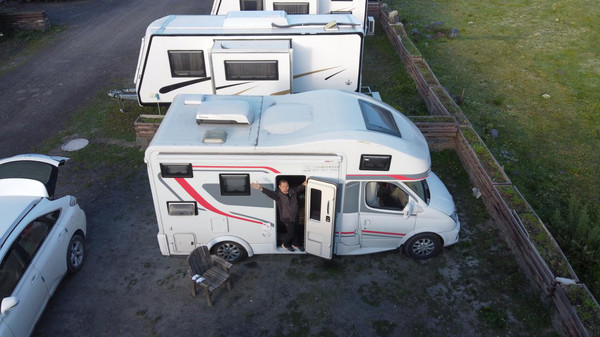 这就是刘大叔,一会儿我们把旁边停车的房车友也吸引过来喝茶了,房车车友走到哪里都是一家。下午茶继续走起。