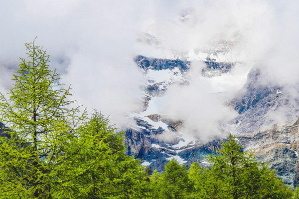 云雾中露出的一点点雪山。