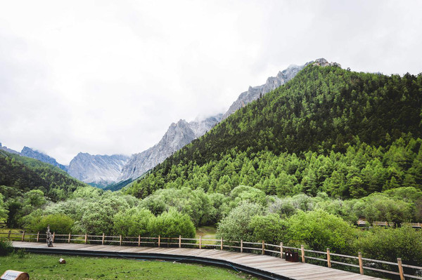 本来上山时都是天气晴朗,有蓝天白云,当我们到达冲古草场时就已经乌云密布了。只能拍点阴天的稻城亚丁。