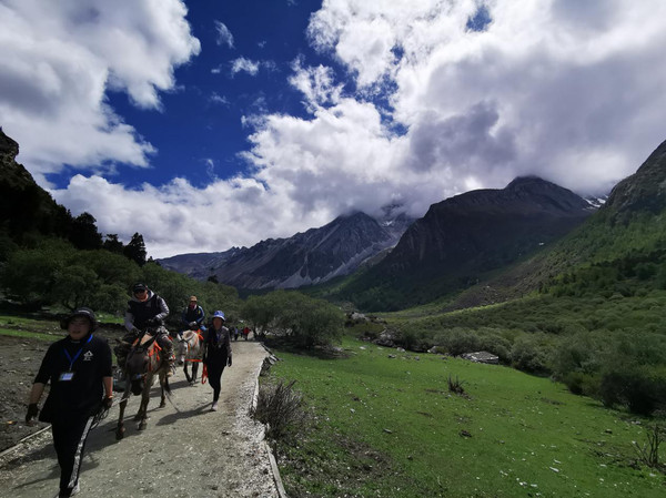 从洛绒牛场走牛奶海,可徒步,可骑马走一半路程(300元骑马费),剩下一半山路同样要亲自爬上去。