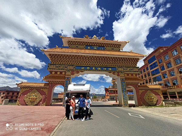 泡完脚继续出发,本来预计在亚拉雪山口观景台拍照打卡的,但是经过时雪山上云层很厚,观景台也有在施工,就没有停留,继续前往来到惠远寺,这里太美了,寺庙座落在群山环绕的一个大草原上,远处就能看到宏伟的塔林,庙门口开阔的青稞地、油菜花地、草原、马场,笔直的公里一直往前延伸。