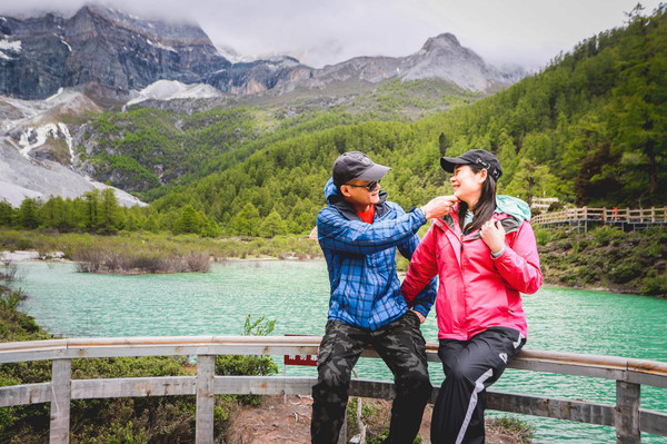 乘坐观光车沿弯曲的山路一路上坡到达观光车终点站扎灌崩,下车后需步行500左右才能到达真正意义上的景点,冲古草场。由于团队中的体质原因,有三位伙伴有轻微高反,有位摄影小哥和另外一位小姐姐体力充沛,又不高反。那我们就兵分两路,我带着轻微高反的三位走卓玛拉措(珍珠海),另外一位小哥带队走牛奶海五色海。