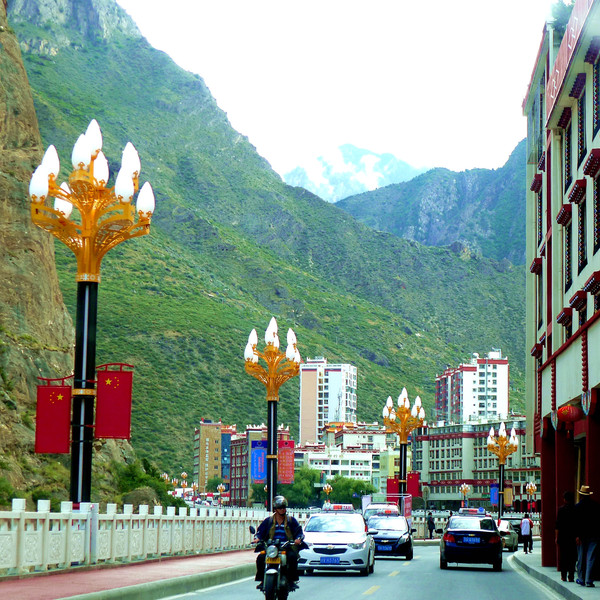 10:36离开“甲居藏寨”,按照昨日过来所走的路线逆行,沿大金川河西岸向南,再经“嘉绒大桥”过“革什扎河”,前往丹巴城区药店购买到4瓶氧气,25元/瓶。购买氧气是为X.J.开车应急,担心他会出现高原反应,然而,随后的经历却表明,X.J.这次表现出色,一直驾车至稻城都无需氧气,结果全被我在亚丁景区内用掉,X.J.不用,总不能再带回厦门。