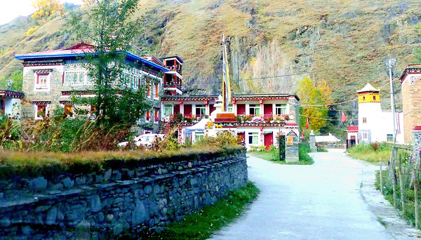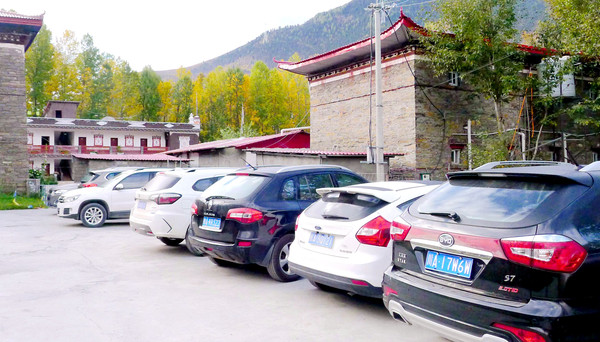 不过,与往日来此所见相比,眼前景色也是有了明显的差异,十二年前可以看到大面积的梯田,层层叠叠十分壮观,藏式小楼也是独幢、稀疏地散落在的梯田之间,现在则是房屋成团连片,周边都是茂密的大树,梯田反倒是稀稀落落,不成气候。显然,现时的村民多以经营客栈、旅馆赚钱,无人再靠种地谋生。