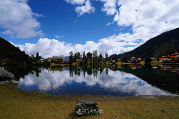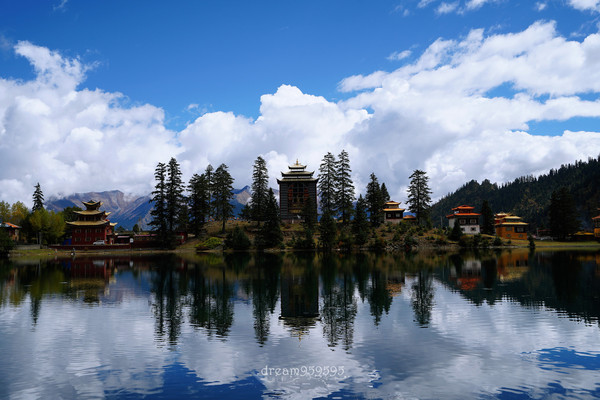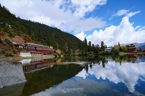 措卡湖倒影很漂亮,适合在湖边野餐喝下午茶,寺庙是宁玛派红教。