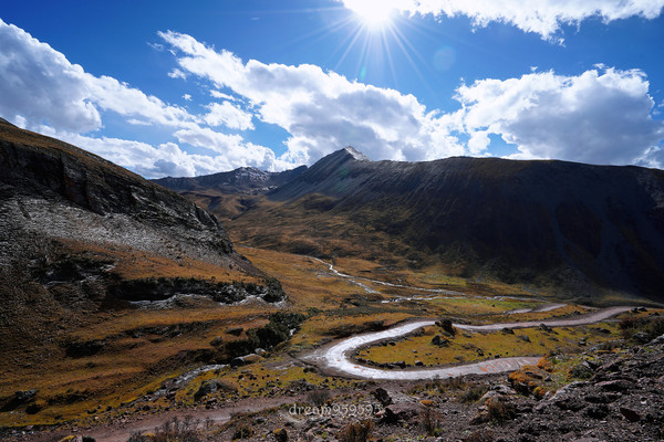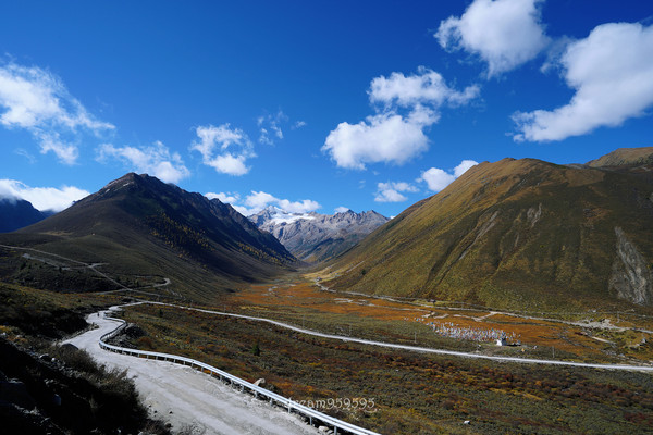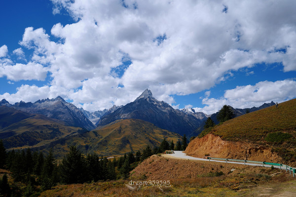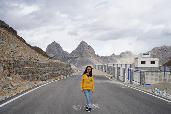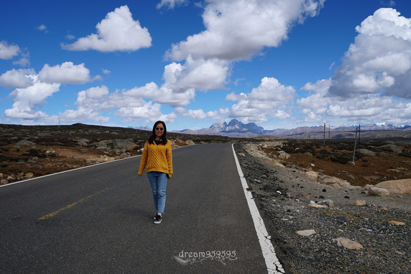 从格聂到巴塘,那可真是一条天路啊,风景非常好,公路上只有我们一辆车,像在做梦,垭口4900多米,下车拍个照有点飘。
