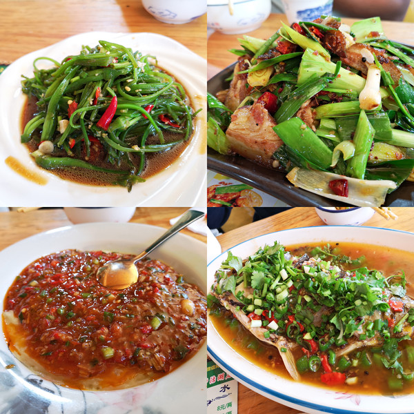 开在泸沽湖里的餐厅。三个招牌菜选了其中的两个,老板拍胸脯说,招牌菜不满意不用付钱。