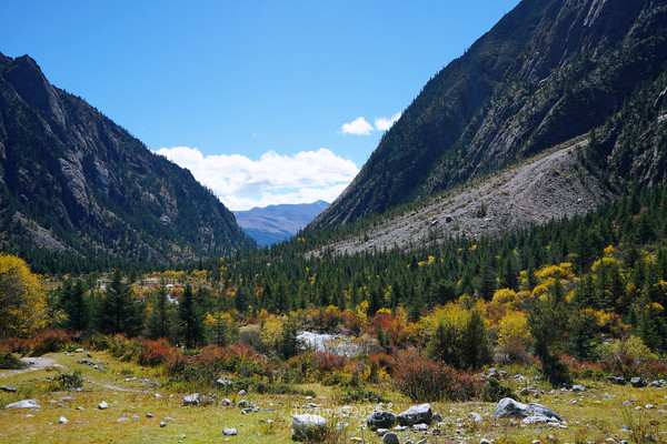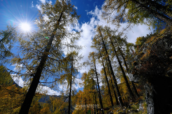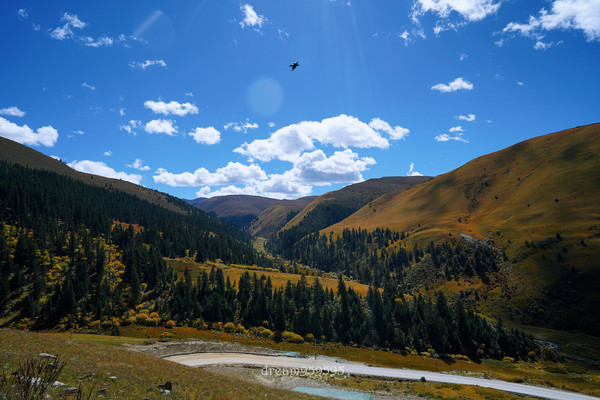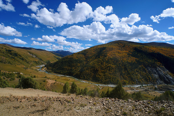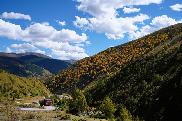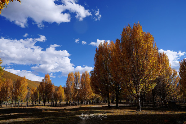 去格聂的路上遇见一片金色的树林,已然感受到了秋意。