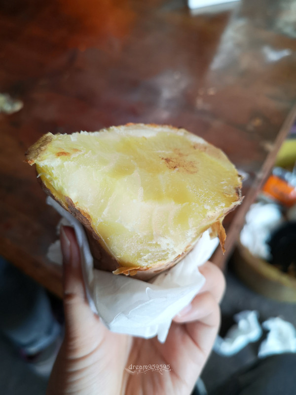 4元一个,很原始的烤法,土豆吃起来有点脆,我还是更喜欢粉糯的。还要蘸点辣椒面,可真辣。