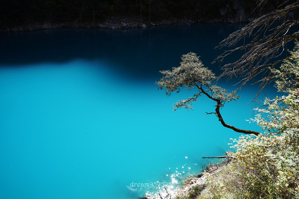 巴巴海的水色比九寨沟还纯粹通透,像一块宝石。据说无论是晴天还是雨天,都是那样饱和度很高的蓝绿色。