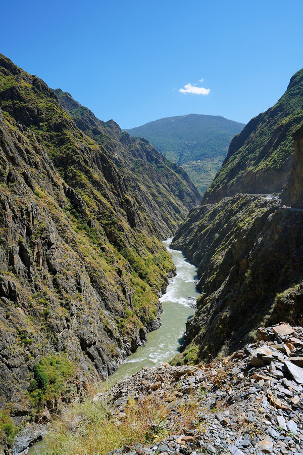 玛娜茶金到稻城的路况并不好,尘土飞扬,一直在峡谷的半山腰开,感觉到了蜀道难。