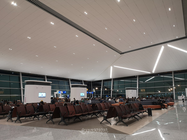 这个机场很大很新,人不多,安检速度比较快。设施很先进,一路刷脸无接触,卫生间门口的电子屏还有布局和拥挤程度。