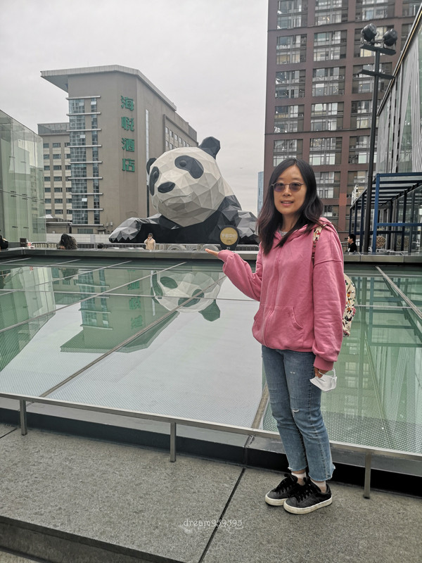 到成都先打卡一个网红地标,IFS的大熊猫,楼下可以看到熊猫屁股,7楼的露台就可以看到正面的大熊猫啦,很多人在排队合影,我们就旁边随便拍一张吧。
