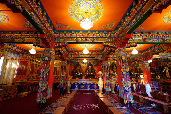 外观金碧辉煌,大殿里面的颜色很新,一看就是经常在维护修缮的。