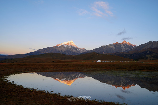 但是这里是很好的看格聂神山日落和日出的地方,因为有倒影。