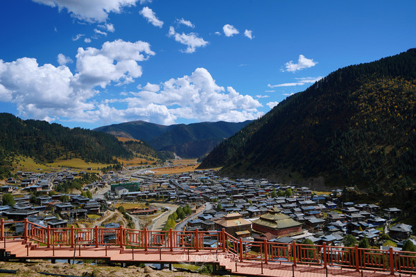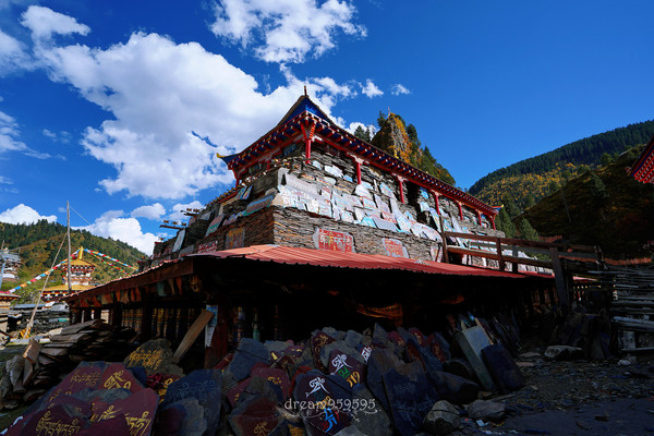 拉日玛镇草原上的一个村落,台州正在援建,五年后将会成为一个成熟的景点,届时会有星空房、滑草等。特色是石板藏寨,村口供奉着很大一尊莲花生大师像,山上刻着莲花生大师的心咒,所以整个村落都是宁玛派的。
