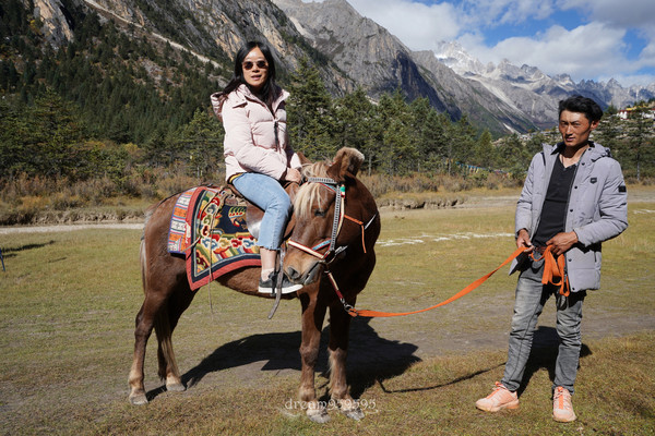 从新冷古寺这里可以骑马到老冷古寺,马帮就在门口,380元一个人,之前是可以摩托的,但是考虑到不安全,被取缔了,据说马帮现在是景区正规组织。