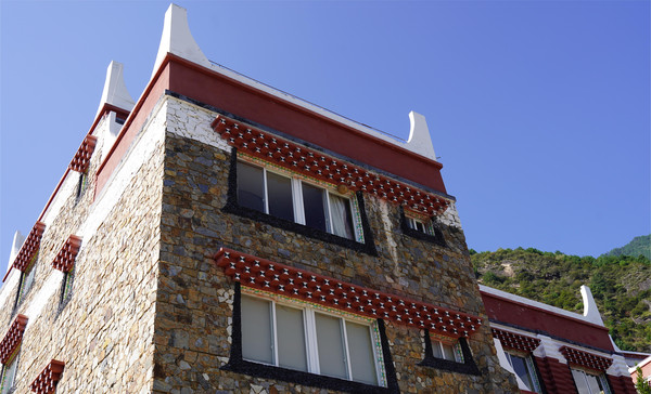 图片:石头切的本身外墙,部分外墙涂上白色;木制门窗和构架常常漆成红色。