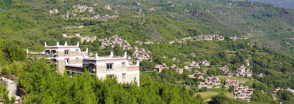 在4号观景台望去,看到整片山坡上一座座分散开的藏式楼房,有的密集,有的稀疏。