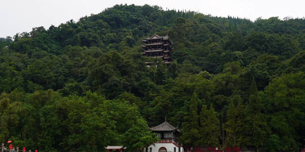 过安澜桥可以看到二王庙了;秦堰楼在二王庙的高处。