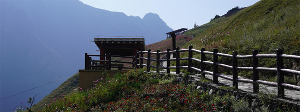 离开位于山下的甲居藏寨游客中心,右转沿着盘山路行驶6公里到甲居藏寨3号观景台。