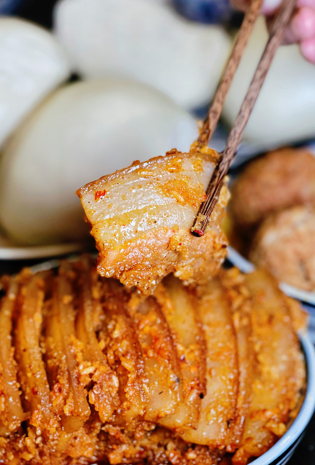 蒸碗其实在全国都很流行,比如北京蒸碗、济南蒸碗等,而曹县的蒸碗也是当地为数不多能够跟米饭搭配的菜品,并且上榜了山东非遗推荐名单。