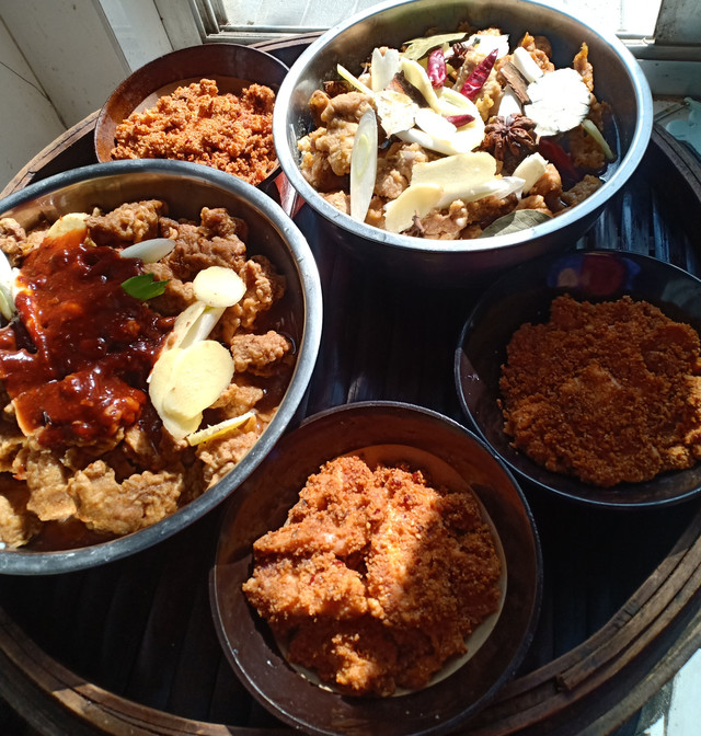 在曹县随便找家蒸碗小吃店基本不会踩雷,位于西郊的李家蒸碗算是蒸碗界的扛把子,虽然位置偏,但已经火了20多年,不少外地游客专门慕名而来。它家的蒸碗据说是祖传,不少食材的做法跟传统蒸碗略微有些不同,比如猪蹄肉是炸过再蒸,四喜丸子是实打实的肉,米粉蒸肉糯而不腻......来此的食客会再炒一个青菜,肉菜搭配,特别下饭。