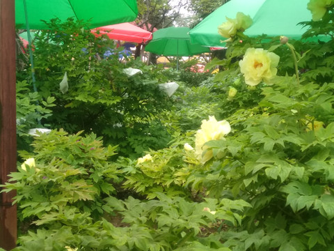 大失所望,牡丹花已谢了,只有在一处有凉棚的园区,才有些牡丹花可看。