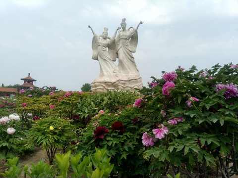 2021年的牡丹季,我们一行3人坐上了去菏泽的列车,是直奔菏泽于4月15日的牡丹花开园日去的,游客人数不算多,也许我们是较早的入园者。园内的牡丹仙子已经在欢迎游客了。