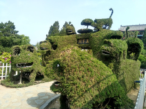菏泽还有一项园艺就是把松树弯制成动物,牌楼等造型。