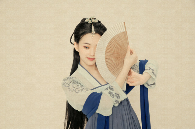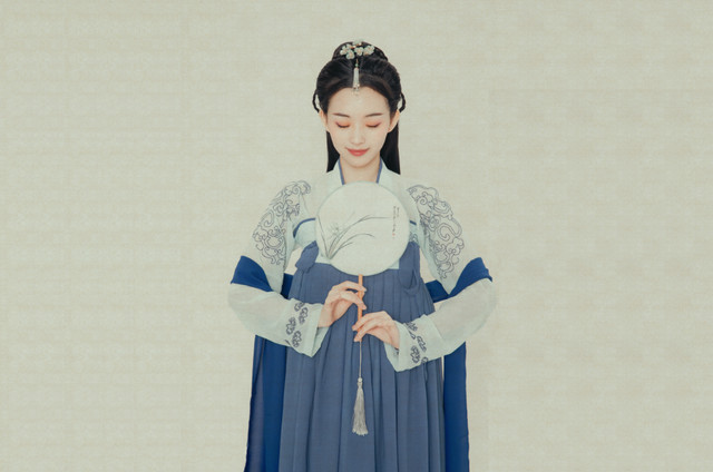 汉服中的衣领是交叠在胸前,衣服的前襟宽大,衣襟向右,用左襟把右襟覆盖在内,就叫做右衽。汉服的袖袂一般都比手臂长,定制的深衣制度规定要回挽至肘,袖径可达四尺,举手间行云流水;行动处长风盈袖。