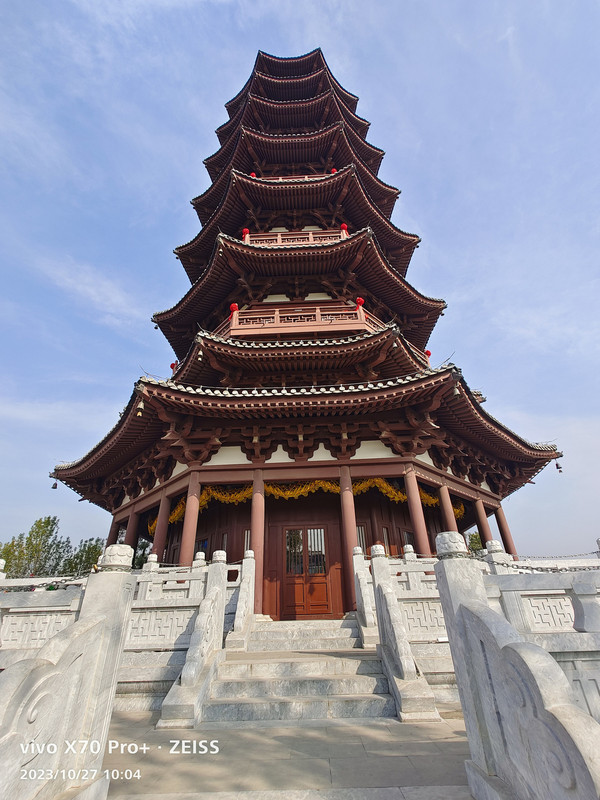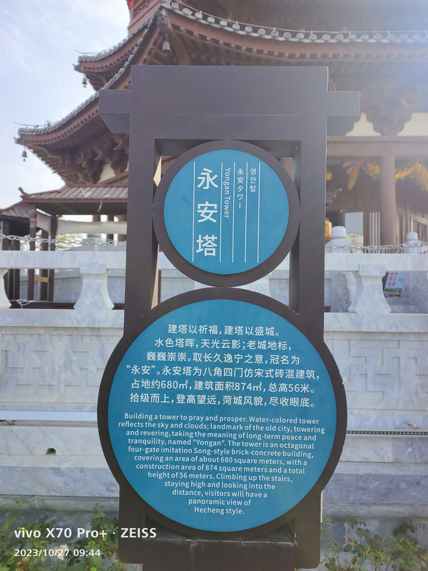 曹州古城是开放性景区,不收门票,我们先去了关帝庙,然后登上永安塔塔楼,塔楼需要购买门票。永安塔坐落于青年湖西南侧,塔身为七层八角门楼阁式砖混建筑,占地面积约680平米,建筑面积874平方米,总高56米(含基座),每层均有围绕环廊,拾级而上,登高望远,菏城风貌,尽收眼底。塔内有许多陈列可供观赏。