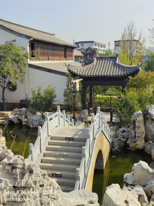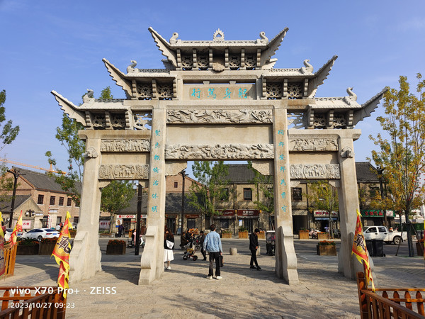 2023年10月27日早晨在汉庭酒店吃过早餐,8点半在菏泽火车站广场乘15路公交到塑料市场下,步行15分钟到菏泽曹州古城。
