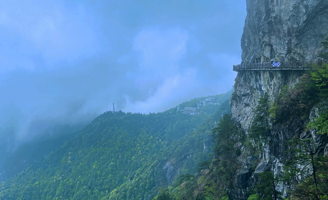上山路线:景区服务中心→中庵索道上行(建议乘坐)→紫极宫→福星岩→许愿桥→玻璃栈道→金顶索道(根据体力情况乘坐)→金顶(小时左右)