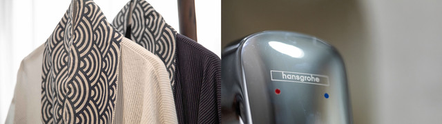 淋浴间与洗漱间分隔开,也方便我们两个分开使用,智能马桶和洗漱盆用的是法恩莎,细节处可见品质,浴室花洒用的是汉斯格雅品牌,民宿对自来水做加压措施,淋浴时非常舒适。