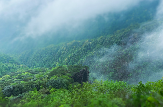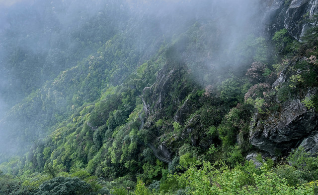 福星谷一路的植被生长非常好,郁郁葱葱的,伴着不时吹来的云雾,真仿若仙境。