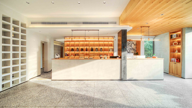 办理入住时,才发现大厅设计更上一层楼,柔和的灰色、米色、原木色等中性色,让整个大厅显得更加清新、自然,同时又不失现代感。