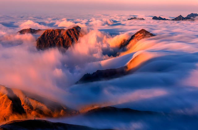 武功山气候温和,四季分明,雨量充沛,低于同期庐山、黄山的气温,是良好的避暑胜地,登金顶、看日出日落、赏云海星空,更是来武功山游玩的三大体验项目,许多爱好徒步摄影的驴友,会选择组队徒步穿越羊狮幕→发云界→金顶→九龙(三天),算是华东比较虐的徒步线路。
