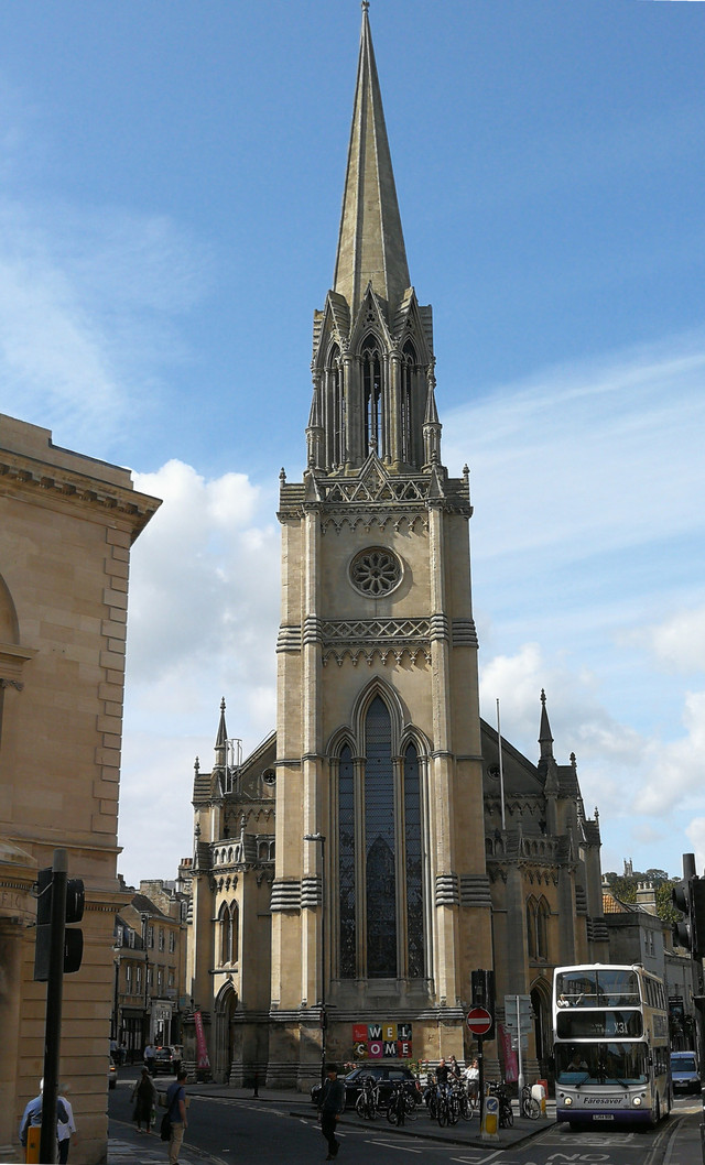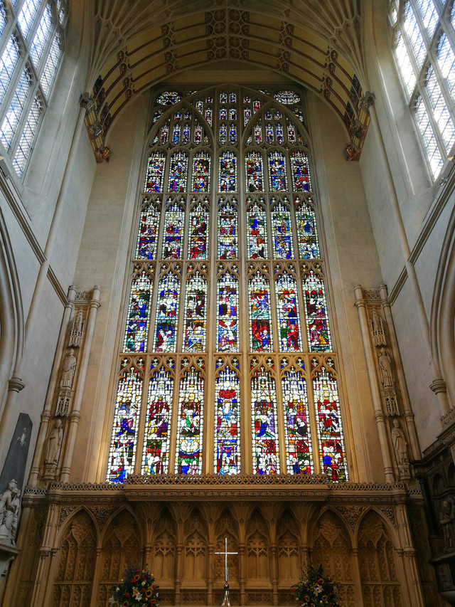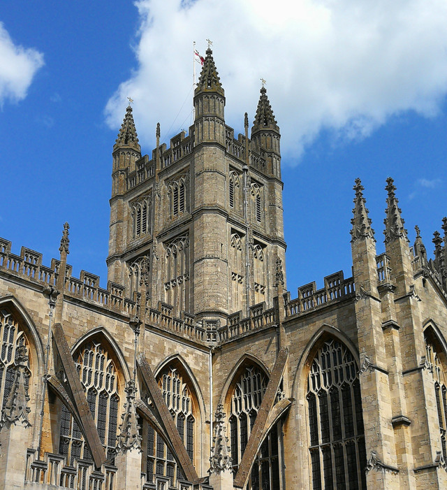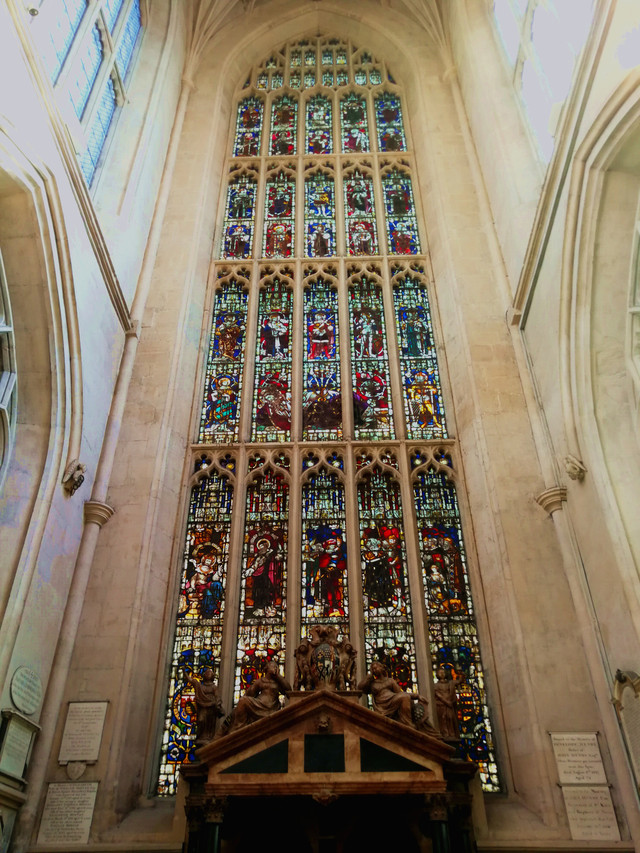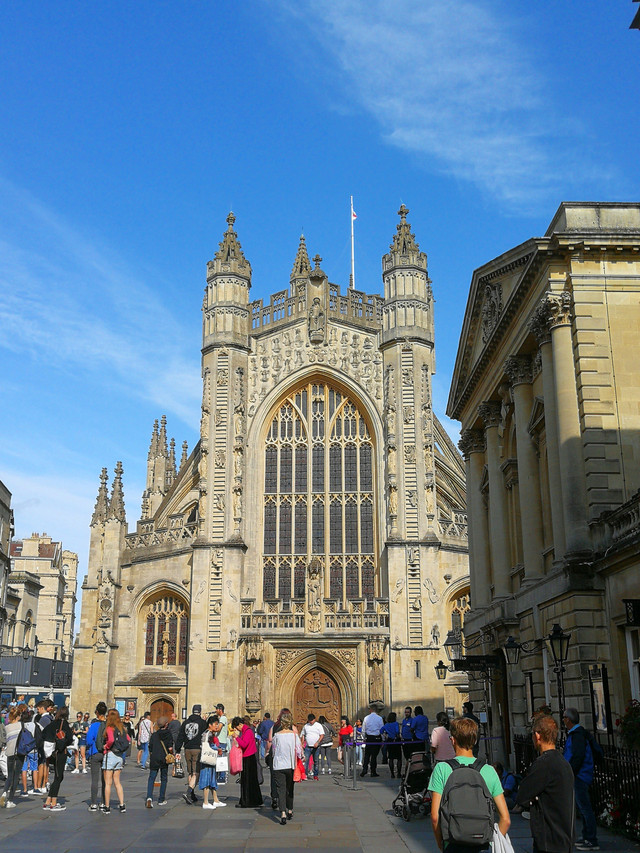 巴斯教堂起初是一座修道院,后来以哥特式的古罗马风格加以整修,1617年最终将修道院改建成了现在的巴斯教堂。巴斯教堂是第一位统一英格兰的国王埃德加王举行加冕仪式的地方。教堂大玻璃窗上有50多幅耶稣在世的景象图,色彩斑斓、磅礴大气。