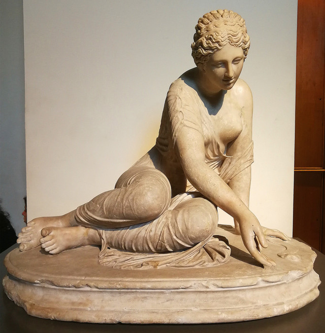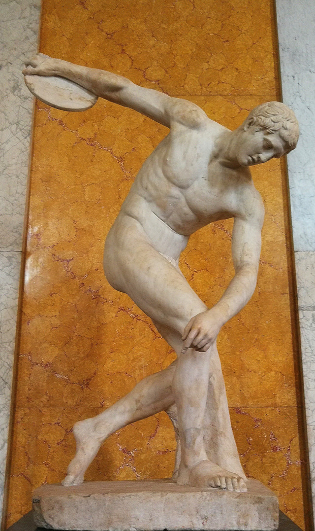 掷铁饼者:这件大理石雕像原作者是古希腊的著名雕刻家米隆,约创作于公元前450年,是古希腊雕塑艺术全盛时期的代表作。原作为青铜铸造。但是米隆的雕塑原作现已不存在了,这件作品是古罗马时期的复制品,距今有1800年历史,于18世纪发掘出土。包括底座在内,整个雕塑高1.69米,重达700余公斤。1948年英国举办伦敦奥运会时,曾以这件雕塑作为视觉形象之一,向全球传达奥运精神。