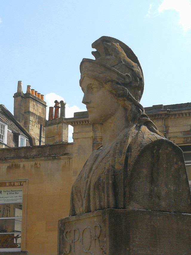 女神"苏利斯·密涅瓦"的铜头像被称为是最著名的罗马不列颠艺术品之一。人们在1727年发现了这尊头像,而它的重新现身正好说明了巴斯的罗马遗址并不是典型意义上的殖民地。罗马不列颠时期的镀金铜制雕刻品非常罕见,目前,除这尊女神头像以外,仅有两件此类型的文物碎片被发掘出来。